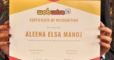 Aleena Manoj receives Certificate of Recognition