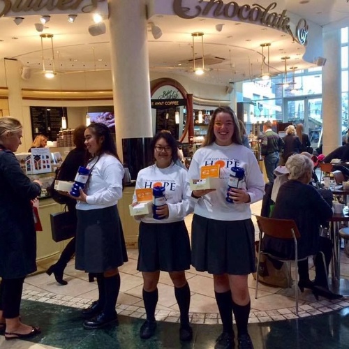 Well done to the group of Transition Year Students who helped fundraise for The Hope Foundation's DAY OF HOPE by selling chocolate bars in Butlers Chocolate Café in Dundrum Town Centre on Wednesday 11 October.